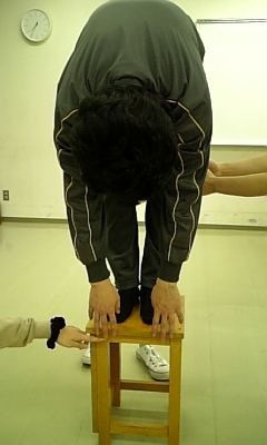 みんなでブリッヂにチャレンジする中、ひとりだけ、苦悶の表情をうかべる人が。